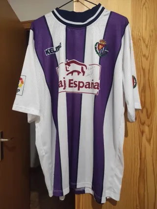 Talla XL. Temporada 1999/2000. Perfecta conservación. Firmada por el defensa brasileño Arilson para un familiar. Voetbal football futbol calcio futebol maglia maglietta camisola shirt maillot new nueva jogo laliga spain usada shirt match blanco violeta morado valladolid cyl castilla pucela jose zorrilla vintage retro kelme nike adidas puma moda ropa deporte pucela match worn Barcelona Madrid Valencia betis Sevilla celta vigo deportivo Coruña Oviedo Alicante Albacete atlético Zaragoza Bilbao mbappe vini lamine yamal Messi ronaldo coleccionismo football Vini Vinicius camp nou FCB Bernabéu atleti Delibes castellano