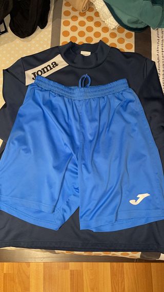 Chándal marca Joma de su club deportivo talla 6 años. Varios conjuntos pantalon corto y camiseta talla 6. Mallas y camiseta térmica futbol niño. Las mallas son talla 6 y la camiseta es talla 8 marca Kipsta. En perfectas condiciones.