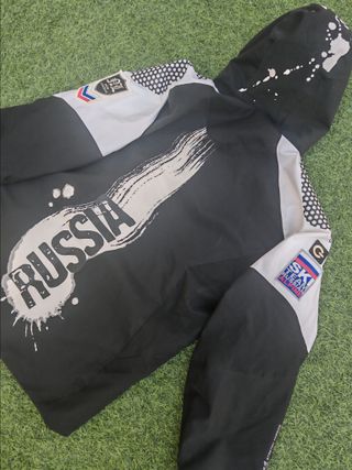 RUSSIA SKI TEAM GOLDWIN. Anorak chaqueta única y exclusiva del equipo de la Federación Rusa de deportes de invierno. Talla: 54 XXL Venta de ropa súper exclusiva on line. Material Descente Poc Head Rossignol Atomic Haglöfs kappa Colmar Spyder Mammut Bogner. - Parche de ALPINE SKI RESORT SHEREGESH. - Logo de GOLDWIN en la parte frontal y en la cremallera. - Detalles de panal de abeja en los hombros. - Parche de the Fund of supporting of Winter Sport Activities.