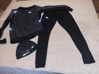 Vendo conjunto de ropa deportiva marca kalenji para correr, ideal para entrenar en invierno. Está compuesto por: -camiseta manga larga y malla larga negro y gris talla l. -camiseta manga larga y malla larga megro y rojo talla l. Ambos conjuntos están en buen estado. Cualquier duda consultar