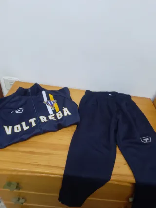 Conjunto de ropa deportiva del Fontsanta-Fatjó Talla M (niñ@) - Chubasqueroazul con cremallera. - Sudadera azul de manga larga con media cremallera (entreno) - Camiseta azul de manga corta (entreno portero) - Pantalón corto negro (entreno portero). - Medias negras portero. - Escudo del club Fontsanta-Fatjó en todas las prendas. Como nuevo y pantalón negro con etiqueta.