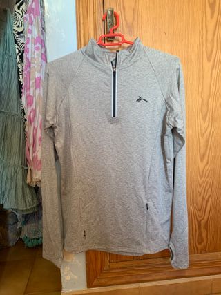 5 x camisetas de manga larga 4 x camisetas de manga corta 2 x pantalones cortos Ropa deportiva variada, algunas prendas sin estrenar y otras en buen estado con poco uso. Tallas pequeña y mediana. Camiseta deportiva de manga larga. Perfecta para actividades al aire libre o entrenamientos. - Cuello alto con media cremallera. - Logo de la marca en el pecho. - Pequeño bolsillo lateral con cremallera. - Puños con abertura para pulgar.