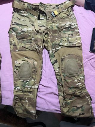 Pantalones tácticos de la marca Invader Gear, talla XL. Son de color multicam y están en muy buen estado. Camiseta manga larga de la marca Delta Tactics talla XXL. son de color multicam y estan practicamente nuevos.