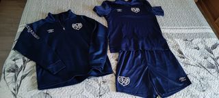 Conjunto deportivo del Rayo Vallecano. Talla 12 - Sudadera azul marino con logo. - Camiseta azul marino con logo. - Pantalón corto azul marino con logo.