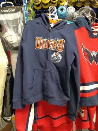 Conjunto de ropa deportiva de hockey. - Sudadera azul con logo de los Oilers. - Camiseta roja con logo de los Capitals. - Camiseta negra y roja con logo de los Blackhawks. - Sudadera azul con logo de los Rangers. - Camiseta verde y negra con logo de los Stars. Junior 125/135 145/155cm