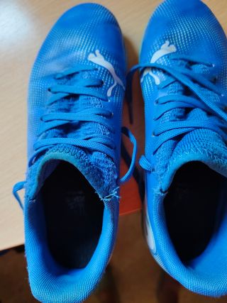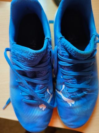 Botas de fútbol para césped artificial o natural. Diseño deportivo y cómodo. - Color azul vibrante. - Cierre con cordones. - Logo de la marca en blanco.