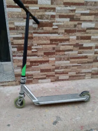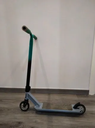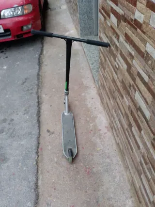 Patinete Oxelo modelo MF500, diseñado para freestyle. - Plataforma de aluminio. - Suelo antideslizante. - Ruedas de 100mm. - Manillar ergonómico - Color verde - Ha sido usado durante 1 año y medio.