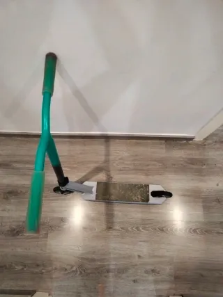 Patinete manual con un diseño moderno y resistente. - Manillar negro con puños. - Base plateada. - Ruedas verde. -Lo puedo limpiar si queréis -Pecio negociable