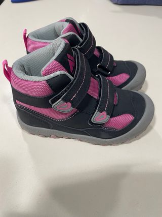 Botas de montaña nuevas, talla28. - Color negro y rosa. - Cierre de velcro. - Suela de goma antideslizante.