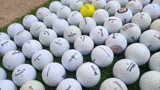 Lote de 95 bolas de golf de diferentes marcas y modelos. - Bolas de golf blancas y de colores. - Incluye marcas como Titleist, Callaway, Srixon, Dunlop, Wilson, Bridgestone, TaylorMade y Noodle. - Variedad de modelos para diferentes niveles de juego.