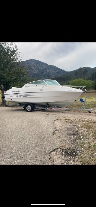 vendo barca sessa islamorada 19, con remolque nuevo con documentacion, motor tohatsu 75hp 4tiempos del año 2002 montado este año con menos de 10horas, auxiliar suzuki 6ho 4tiempos, camarote amplio para 2 adultos y 2 niños, amplia bañera, solarium con sus colchonetas, toldo bimini con cremallera para poner dos telas para cubrir del sol, molinete electrico, 2 baterias con desconectador, deposito de agua con ducha en bañera, despachada para 6 personas, muy amplia y comoda, 2 cañeros en popa, wc quimico potti, lona de fondeo, escalera de baño de inox etc para mas informacion no duden en preguntar!