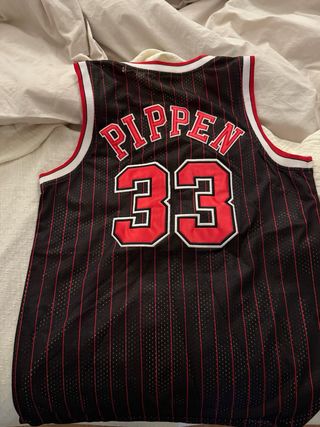 Camiseta de baloncesto de los Chicago Bulls con el número 33, talla M. - Diseño clásico de los Bulls. - Tejido de malla transpirable. - Detalles de rayas verticales rojas.