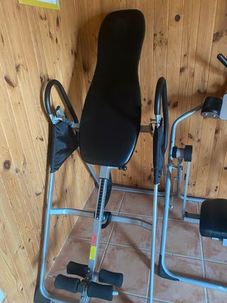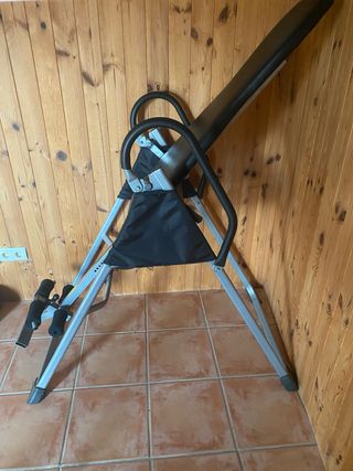 Banco de inversión para aliviar la tensión de la espalda. Estructura metálica y acolchado. - Asiento acolchado. - Asideros de espuma. - Estructura metálica plegable.