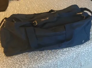 Práctica bolsa de deporte de color azul. - Compartimento principal espacioso. - Bolsillo frontal con cremallera. - Asas de mano y correa para hombro.