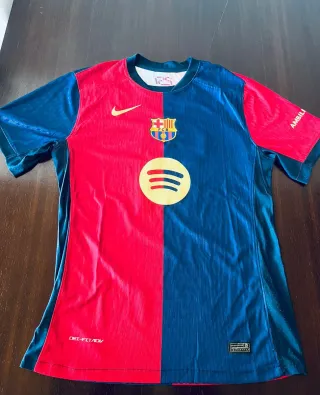 Camiseta oficial del FC Barcelona de talla XL. Diseño dividido en dos colores, rojo y azul marino, con el escudo del club y el logo de Spotify. - Camiseta de manga corta. - Logo de Nike bordado. - Tecnología Dri-FIT ADV.