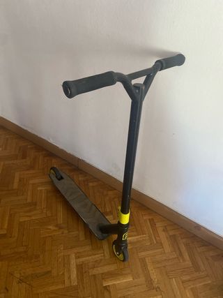 Patinete de estilo urbano con manillar negro y detalles en amarillo. - Plataforma antideslizante. - Ruedas de color amarillo. - Puños negros para un mejor agarre.