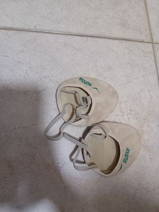 Punteras de gimnasia rítmica de la marca Russé. Poco uso. Niña 10 años -Color beige, muy suaves y comodas. - Cintas elásticas para ajuste.