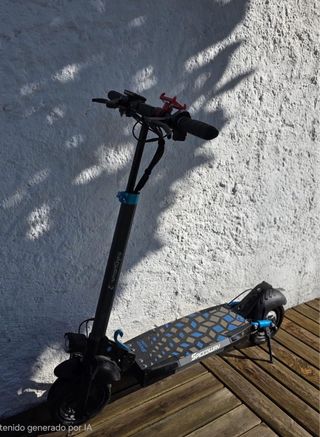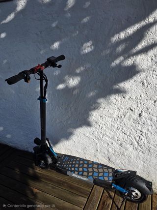 Patinete eléctrico Cecotec en buen estado, listo para usar. - Diseño moderno y funcional. - Ruedas con detalles azules. - Incluye casco protector.