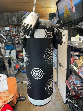 Saco de boxeo en perfecto estado - Es pesado, 40kg - incluye soporte de pared y soporte de techo repito, está en perfectas condiciones e incluye los dos soportes acepto cambio por algo que interese