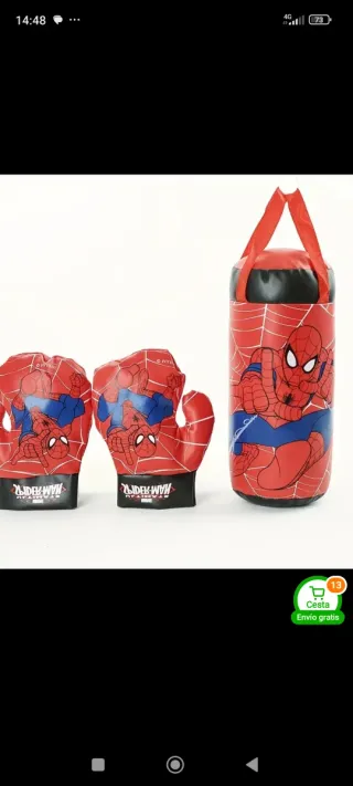 Set de boxeo infantil con diseño de Spiderman, ideal para los más pequeños. - Saco de golpeo. - Par de guantes de boxeo.