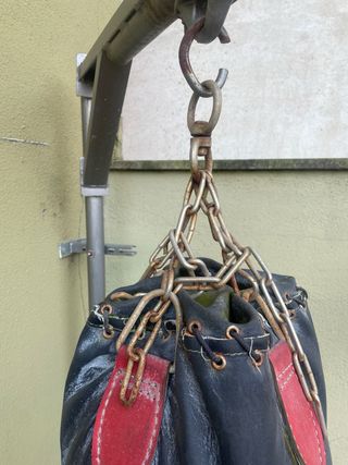 Se vende saco de boxeo con accesorios. - Soporte de pared para saco de boxeo. - Cuerda de sujeción.