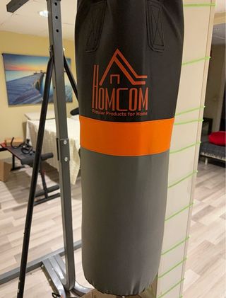 Saco de boxeo de pie, ideal para entrenamiento. Saco de Boxeo HOMCOM 60x60x180 cm Negro, Rojo. No se envía. Se tiene que venir a buscar. La base del saco lleva en su interior un poco más de 30 kg de tierra. O sea, que el saco para su transporte, pesa más de 30 kg. Recoger en un tercer piso sin ascensor. Está ya montado. Se ha utilizado 10 veces como mucho.