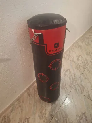 Vendo pack de boxeo compuesto por: - Saco de boxeo Domyos (usado unas 15 veces, en muy buen estado). - Soporte de pared para colgar el saco (con signos de óxido, pero totalmente funcional). - Guantes Everlast incluidos en el precio. Todo el conjunto está en buen estado y listo para usar. Ideal para entrenar en casa. 📍 Entrega en mano en Córdoba. 💰 Puedo vender por separado.