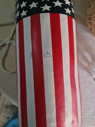 Saco de boxeo para niño, tiene un pequeño rayajo de boli, medidas aprox... 42x14