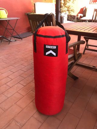 Saco de boxeo de la marca Outshock en color negro. - Material exterior brillante. - Cierre superior con cremallera y anillas de sujeción. -incluye soporte para el que lo necesite