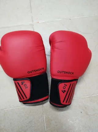 Set de boxeo infantil de la marca Outshock de Decathlon. Incluye guantes y saco de boxeo. Lo vendo por falta de uso. - Saco de boxeo con base. - Guantes de boxeo rojos (como se ve en una foto, tienen unas letras escritas).