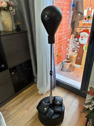 Saco de boxeo para niños de Decathlon, ideal para iniciarse en el boxeo. Es un artículo en buen estado. - Perfecto para mejorar la coordinación y la resistencia. - Fácil de montar y usar. - Base estable y segura.