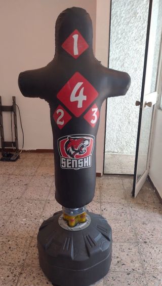 Muñeco de entrenamiento para boxeo y artes marciales. - Diseño de cuerpo humano. - Base rellenable para mayor estabilidad. - Marca: Senshi. - Incluye números para entrenamiento.