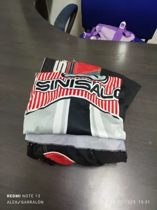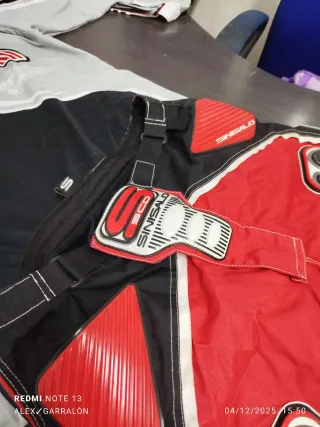 Pantalones de la marca SINISALO con un diseño llamativo. - Combinación de colores rojo, blanco, negro y gris. - Tejido ligero y transpirable.