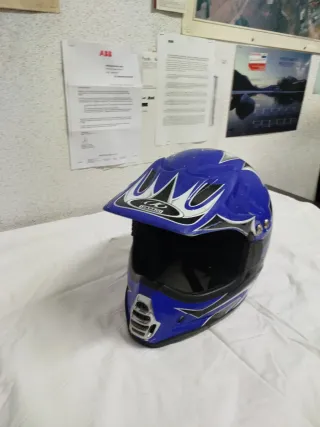 Casco de motocross en color azul con diseño deportivo. - Visera integrada. - Acolchado interior. - Cierre de seguridad.