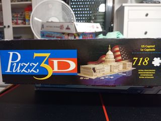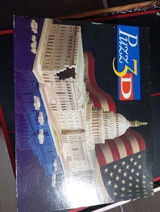 Puzzle 3D del Capitolio Nacional de Estados Unidos. Representa el icónico edificio con detalles arquitectónicos. - Piezas de construcción tridimensionales. - Diseño inspirado en la bandera de EE. UU.
