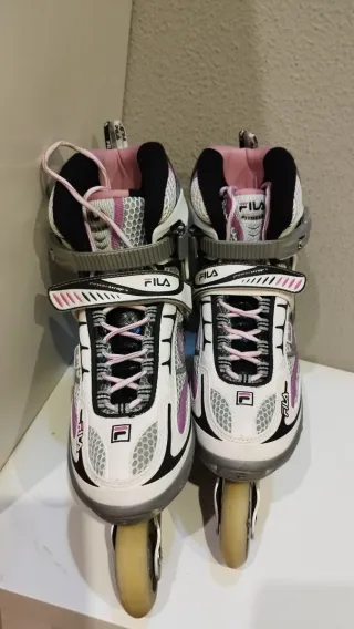 Se venden patines Fila talla 40 con: ✔ Coderas ✔ Rodilleras ✔ Muñequeras ✔ Bolsa de transporte ✔ Llaves de ajuste para mantenimiento y regulación Características: Sistema de cierre seguro y cómodo Ruedas y freno en muy buen estado Estructura resistente para uso urbano y de ocio. Talla 40 — ideal para adultos/jóvenes