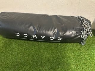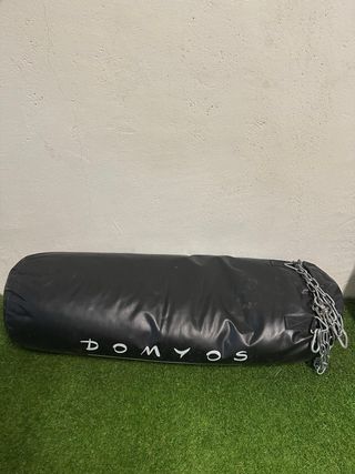 Saco de boxeo de la marca DOMYOS en color negro. Ideal para entrenamiento. Esta en muy buenas condiciones - Material resistente. - Incluye cadena para colgar.