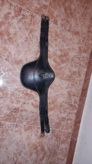 Cincha barriguera salto de cuero negro con elasticos para caballo 115cm En perfecto estado