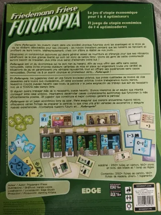 Juego de mesa Futuropia de Friedemann Friese. - Incluye tablero, cartas y fichas. - Componentes de madera y cartón. - Totalmente completo. -Como nuevo - De 2 a 4 jugadores. Se hacen lote y pack