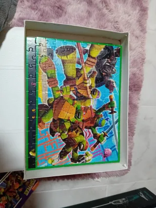 Pack de 4 puzzles de las Tortugas Ninja. Cada puzzle tiene un número de piezas diferente. Al puzzle de 150 piezas le falta 1. - Puzzle 1: 50 piezas - Puzzle 2: 80 piezas - Puzzle 3: 100piezas - Puzzle 4: 150 piezas - Medidas: 34 x 24 cm