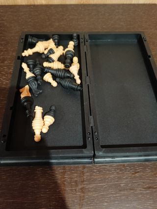 Ajedrez de tamaño grande con piezas magnéticas para que no se muevan. - Incluye tablero y todas las piezas. - Piezas de color blanco y negro.