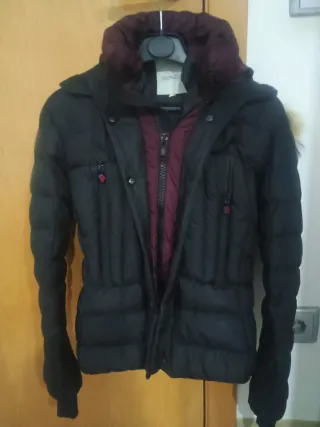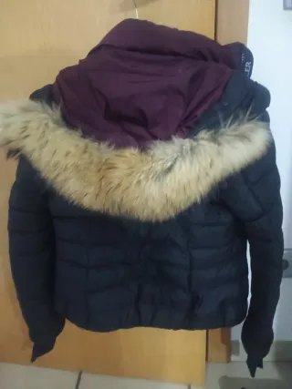 Anorak oscuro con capucha y detalle de pelo. - Capucha con forro de pelo. - Cierre de cremallera. - Diseño acolchado.