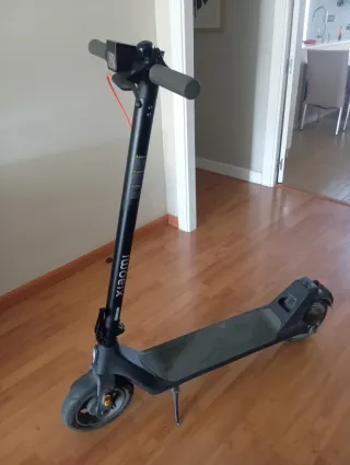 Patín eléctrico de color negro, ideal para desplazamientos urbanos. - Diseño plegable para facilitar su transporte. - Manillar con empuñaduras texturizadas. - Freno automático - Plataforma antideslizante. - rueda trasera - cargador incluido - usado 2 meses