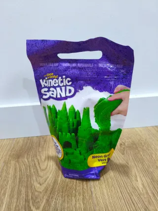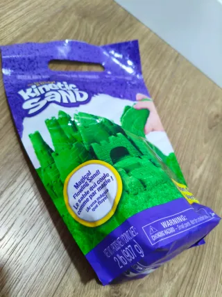 Arena mágica Kinetic Sand de 2 lb (907 g). Arena color verde neón que fluye como por arte de magia. Comprada en Amazon