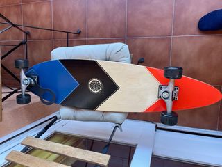 Longboard de la marca Oxelo, ideal para desplazamientos y carving. - Diseño con acabado en madera. - Ruedas negras. Nunca usado como se puede ver. a estrenar