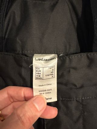 Pantalón de nieve Wedze en color negro, talla 14 años. Del Decathlon, Pullnfit, usado dos veces - Tirantes ajustables. - Bolsillos con cremallera. - Cierre de velcro en los laterales. - Se ajusta el largo - Impermeable y con gomas abajo para que no entre la nieve