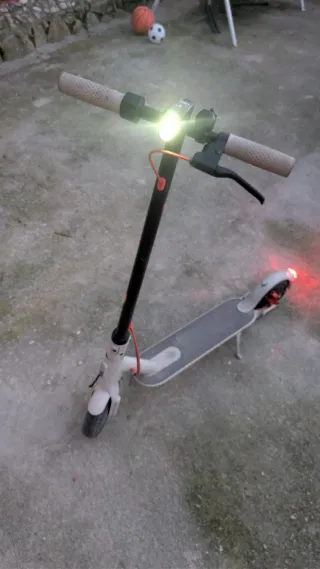 Patinete eléctrico Xiaomi Scooter 3 en color blanco y negro. Ideal para desplazamientos urbanos. - Manillar con puños texturizados. - Freno delantero. - Luz delantera y trasera. - Buena autonomía. - Max 25km/h. - Se entrega con juego de neumáticos nuevos sin estrenar. Se entrega sin el cargador porque lo uso para otro patinete que tengo. Con acceso clave para bluetooth y acceso a la aplicación Xiaomi .