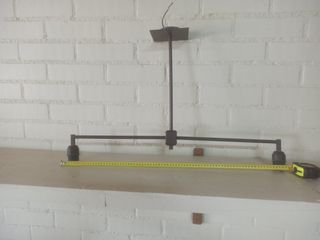 Lámpara de techo estilo billar, ideal para iluminar tu mesa de juego. Se incluyen medidas para facilitar la instalación. - Diseño metálico oscuro. - Dos puntos de luz.