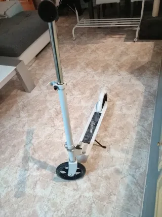 Patinete plegable de la marca Ancheer en color blanco. - Plataforma antideslizante. - Ruedas de goma. - Manillar ajustable.