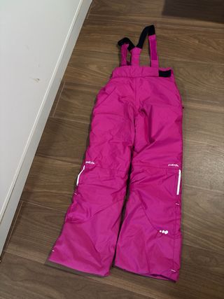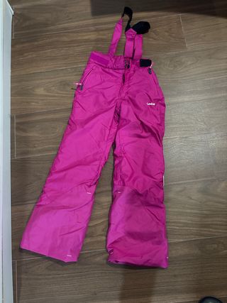 Pantalón de esquí para niños de 7 a 9 años, con una altura recomendada de 125 a 132 cm. Ideal para disfrutar de la nieve con comodidad. - Color fucsia vibrante. - Tirantes ajustables. - Bolsillos laterales con cremallera.